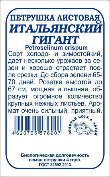 Сорт холодо- и зимостойкий, дает несколько урожаев за сезон. От всходов до сбора зелени 65-70 дней. Розетка полувертикальная, высотой до 67 см, мощная и пышная, образует множество крупных нежных листьев темно-зеленого цвета. Аромат очень сильный, приятный. Зелень хорошо отрастает после срезки, долго сохраняет товарный вид и ароматичность. Используют в свежем и сушеном виде как приправу, украшают блюда.