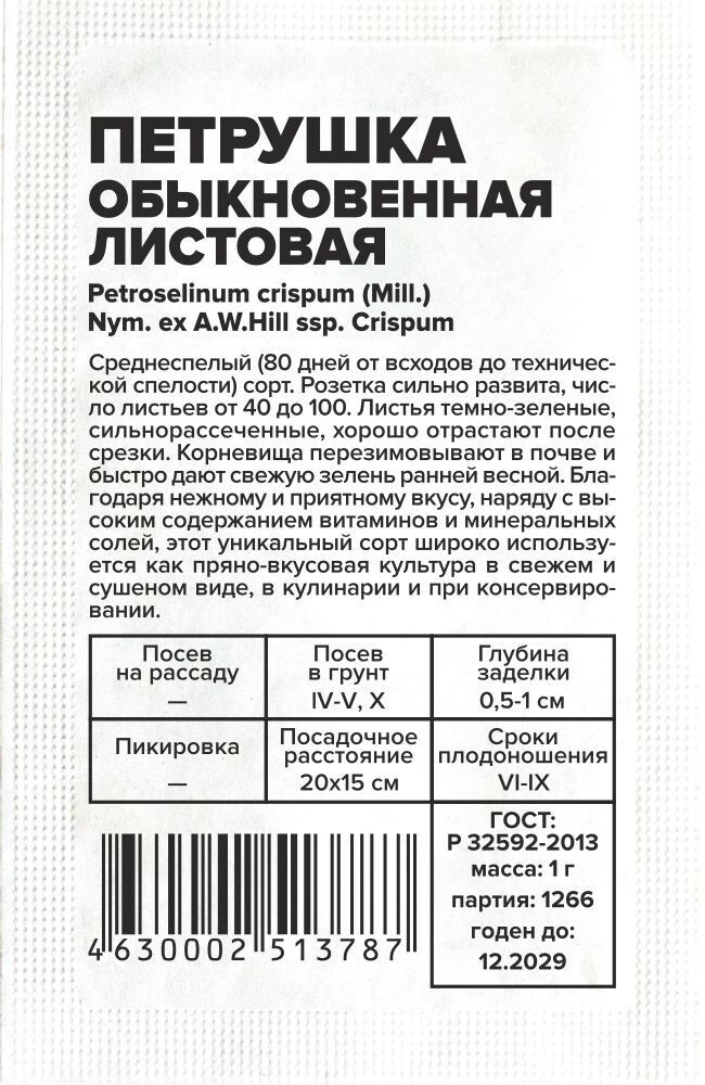 • Культура: Петрушка листовая