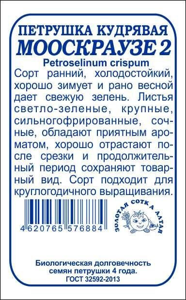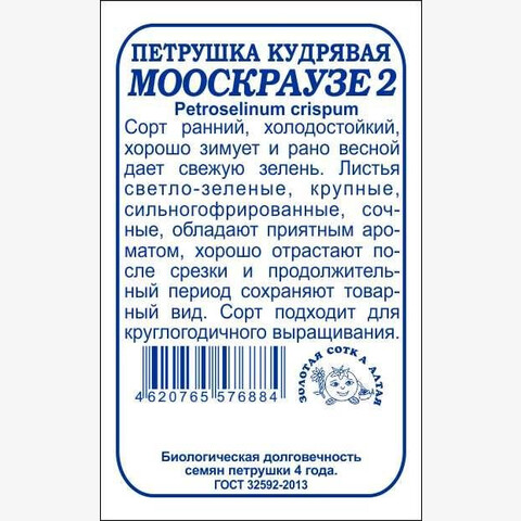 Сорт ранний, холодостойкий, хорошо зимует и рано весной дает свежую зелень. Розетка полувертикальная. Листья светло-зеленые, крупные, сильногофрированные, сочные, обладают приятным ароматом, хорошо отрастают после срезки и продолжительный период сохраняют товарный вид. Сорт используется в свежем и сушеном виде, хорошо переносит заморозку. Подходит для круглогодичного возделывания. Сбор зелени с ранней весны до поздней осени.