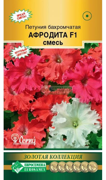Сегодня петуния стала украшением клуб, рабаток, окон, балконов, вазонов, цветников, бордюров – где только ее не встретишь! Роскошные цветы радуют нас с наступления лета до самых холодов. Щедрое цветение, фантастическое сочетание окрасок цветков создают нарядную, праздничную атмосферу, а контрастные расцветки придают цветкам некую торжественность. Смесь создает ощущение, будто она полностью состоит только из восхитительных цветков. По декоративности цветка и цветущего куста в целом петуниям серии Афродита нет равных. Крупные цветы, края которых отделаны волнистыми и бахромчатыми рюшами, в пору цветения представляют собой грандиозную картину. Одинаковые по размеру компактные растения несут крупные, гофрированные цветки, не теряющие декоративности в течение всего лета. Особенно привлекает коротким периодом выращивания, продолжительным цветением и выносливостью. Отлично удается в грунте и контейнерном декоре. Великолепно подходит для оформления комфортных и романтических уголков для отдыха. Высота растения-25-30 см Диаметр цветка-10 см