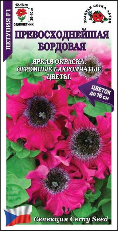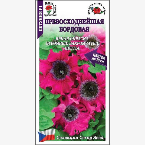 Супермодная петуния с уникальными цветами. Растение мощное, компактное, ветвится слабо, великолепно переносит пересадку в цветущем виде и устойчива к неблагоприятным погодным условиям. Цветки гигантские, диаметром до 16 см, насыщенной бордовой окраски с темным центром, лепестки волнистые с бахромчатым краем. С успехом используется для оформления цветников, особенно хороша в ящиках и горшках.