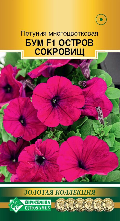 Петуния стала в настоящее время королевой среди популярных цветочных растений. Ее выращивают сами, покупают в готовом виде уже цветущей либо в виде рассады, с большой любовью высаживают ее в различные цветники открытого грунта, напольные горшки и контейнеры, подвесные вазоны, балконные ящики, а ведь еще совсем недавно прохожие с удивлением разглядывали редкие балконы городских домов, украшенные красивой шапкой цветов. Петуния Остров Сокровищ - новинка в сегменте генетически компактных петуний с отличной устойчивостью к атмосферным воздействиям, с ранним продолжительным цветением, с высокой однородностью растений по габитусу и отличным боковым ветвлением. Растение быстро наращивает вегетативную массу и формирует огромное количество цветков ярких насыщенных окрасок. Отличный вариант для посадки в вазоны, контейнеры, бордюры, рабатки и различные цветники открытого грунта.