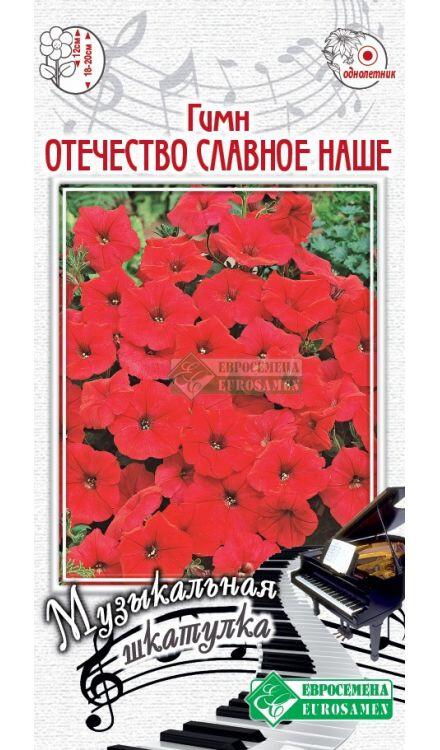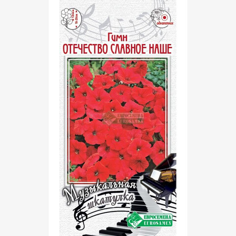 “Славься, Отечество наше свободное, братских народов союз вековой, предками данная мудрость народная! Славься, страна! Мы гордимся тобой…….! - величественные строки совершенно гениального произведения А. Александрова на слова С. Михалкова, с которым с самого детства ассоциируются красота, яркость, широта, необъятность и уникальность нашей Родины. Каждый из нас ощущает трепет и радость, когда видит, как в великие праздники под гимн нашей страны поднимается государственный, гордо развевающийся, флаг - исторический мостик того, что нам передано предками. Красный цвет является одним из символов независимой и сильной страны, олицетворяющей единство и силу духа нашего народа. Петуния, названная в честь этого произведения, имеет крупный цветок ярко- алого окраса, не повреждается дождем, всегда опрятна и нарядна, идеально подходит для кашпо, подвесных корзин и цветников различного назначения.