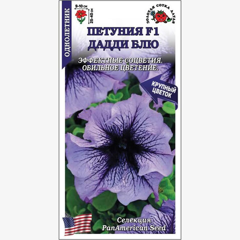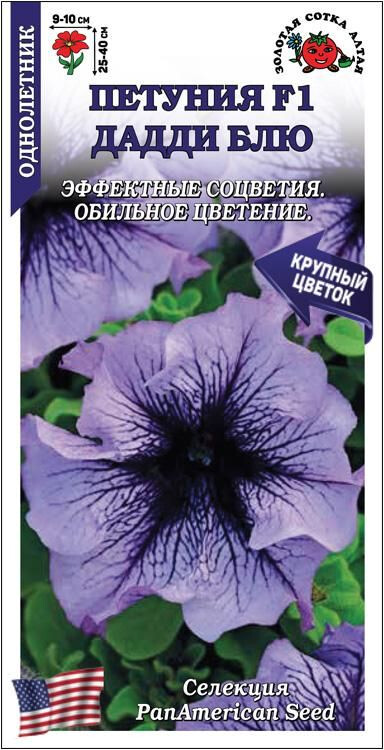 Растение компактное, хорошо ветвится от основания. Цветки крупные, воронковидные, голубой окраски с более темным центром и выразительными темно-фиолетовыми прожилками. Цветение обильное и продолжительное. Петуния незаменима при украшении балконных и оконных ящиков, подвесных кашпо и корзин. Прекрасно смотрится при создании клумб и бордюров.