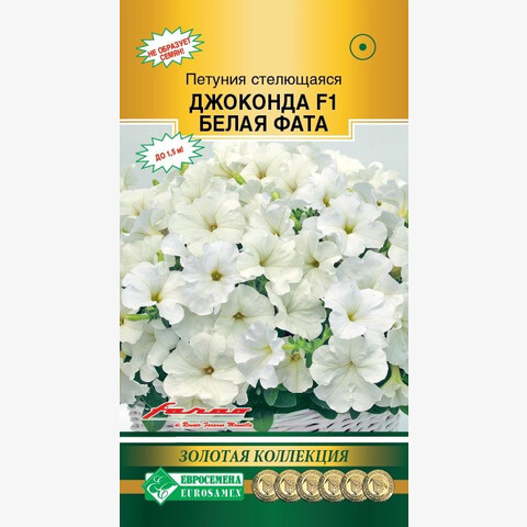 Прорыв в селекции петуний! Это просто чудо! Эта петуния отличается невероятной мощью ветвящихся побегов, усыпанных ошеломляющим количеством цветков и покрывающих почву цветочным ковром. Она способна закрыть землю вокруг себя в диаметре до 1,5 метров. Изумительно смотрится на изумрудной зелени газонов в виде различных композиций. Цветки очень нежного белого цвета, их настолько много, что не видно зелени листьев. Идеальный вариант для оформления романтических уголков отдыха в Вашем саду, подвесных корзин, балконов, которые в состоянии подчеркнуть ее изысканную, утонченную красоту. Продолжительность цветения и невзыскательность к неблагоприятным условиям делают ее незаменимой в оформлении Ваших садов.