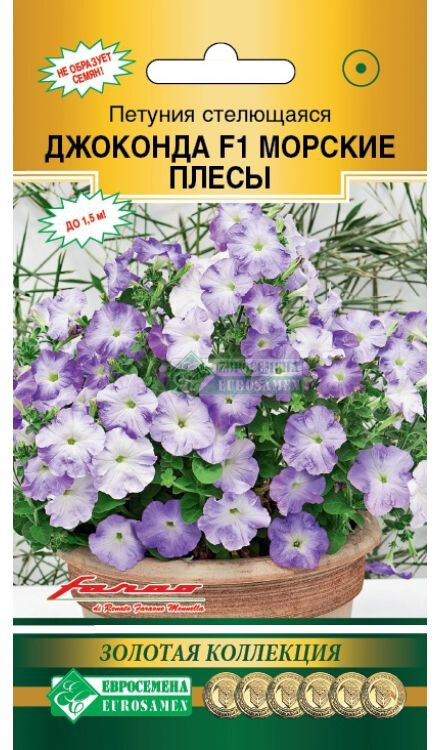 Джоконда Морские Плесы- настоящая красотка, серьезнейший конкурент сурфиниям, которые являются общепризнанными чемпионами по обилию цветения, но размножаются только вегетативно. Новинка предстоящего сезона отличается уникальными характеристиками – дает ошеломляющее количество цветов за счет мужской стерильности (не дает семян), славится невероятной мощью ветвящихся побегов, усыпанных большим количеством цветков, покрывающих почву цветочным ковром. Она способна закрыть землю вокруг себя в диаметре до 1,5 метров, а так же адаптироваться к широкому диапазону температур – от -5°С до +40°С. Цветки двухцветные, нежнейшей бело-голубой окраски, их настолько много, что не видно зелени листьев. Отличается устойчивостью растений к серой гнили и идеально подходит для всех видов использования: для горшков, контейнеров, подвесных корзин, различных цветников открытого грунта. Идеальный вариант для оформления романтических уголков отдыха.