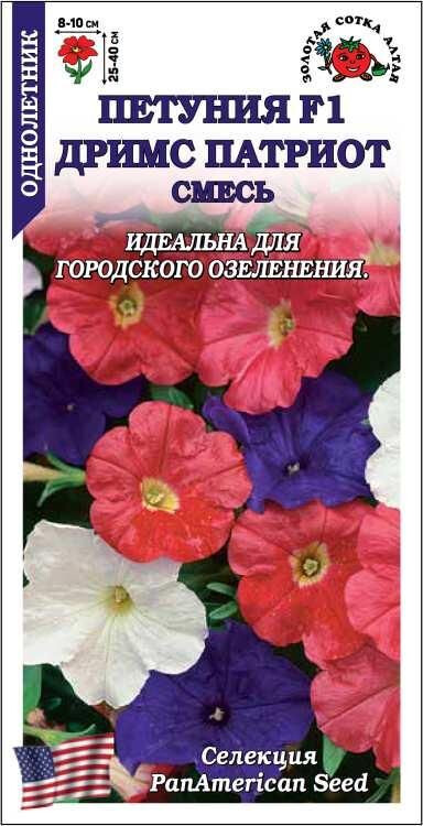 Петунии серии Дримс отличаются очень ранним и обильным цветением, устойчивостью к неблагоприятным условиям и поражению болезнями. Растение крепкое, компактное, с хорошей ветвистостью, прекрасно разрастается и замечательно восстанавливается после дождя и ветра. Крупные воронковидные цветы белого, красного и синего цветов добавят контрастность в цветники, бордюры, вазоны и балконные ящики.