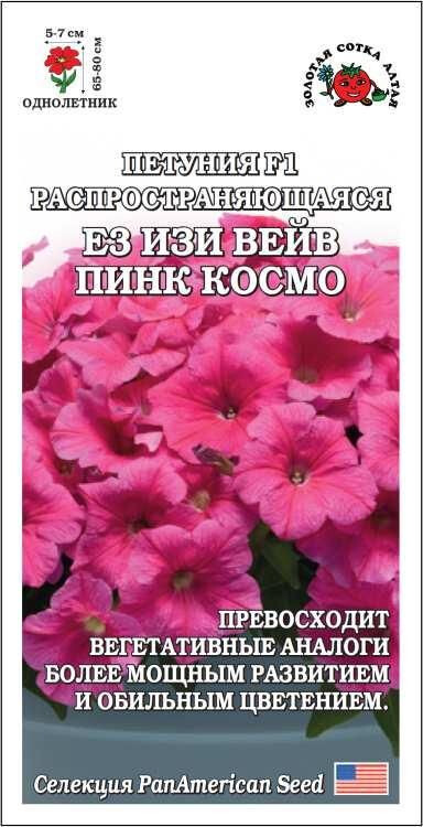 Петунии серии E3 Easy Wave менее требовательны к длине светового дня, долго сохраняют привлекательность, цветут продолжительно и очень обильно, формируют плотные аккуратные и чрезвычайно компактные кустики. Цветы многочисленные, ярко-розовые с более темным жилкованием. Разрастаясь, плети образуют сплошной ковер площадью до 1 м2, а в подвесных кашпо и вазонах на ножке формируют красивую куполообразную крону.