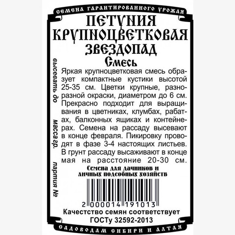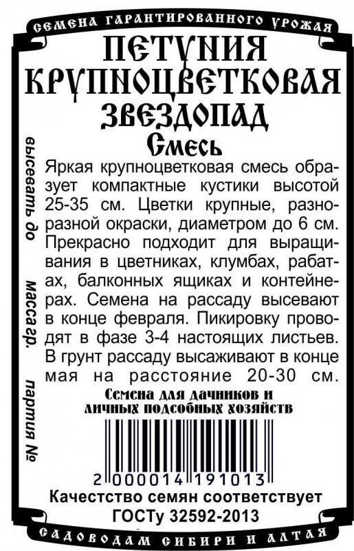 Яркая крупноцветковая смесь образует компактные кустики высотой 25-35 см. Цветки крупные, разнообразной окраски, диаметром до 6 см. Прекрасно подходит для выращивания в цветниках, клумбах, рабатках, балконных ящиках и контейнерах. Семена на рассаду высевают в конце февраля. Пикировку проводят в фазе 3-4 настоящих листьев. В грунт рассаду высаживают в конце мая на расстояние 20-30см.