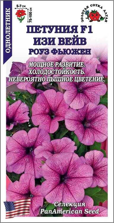 Петунии серии Easy Wave холодостойкие, долго сохраняют декоративность и пышно цветут до заморозков. Растения плотные, аккуратные, сначала растут вверх, образуя куполообразные кустики, а затем наращивают плети длиной до 1 м. Цветы ароматные, многочисленные, насыщенно-розовые с более темными прожилками. На клумбах петунии этой серии образуют сплошной ковер, а в подвесных кашпо и вазонах на ножке формируют красочный каскад.