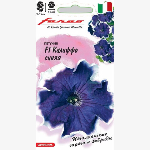 Многоцветковые петунии F1 Калиффо — итальянские красавицы для создания уютного уголка солнечного средиземноморья в саду и на балконе. Аккуратные «точеные» кустики густо покрывают нарядные цветки диаметром 5 см. Глубину оттенка подчеркивает бархатистая текстура цветков, а яркий белый ободок по краю придает контрастности. Посев проводят поверхностно, не заделывая, с февраля по март. При зимнем посеве всходам необходима подсветка. Всходы появляются через 7-12 дней. На постоянное место высаживают, когда минует опасность заморозков. Цветет с конца мая весь сезон. Светолюбива и достаточно засухоустойчива. Предпочитает легкие, плодородные, хорошо дренированные почвы. Украсит контейнеры, вазоны, балконы, подоконники, рабатки, бордюры.