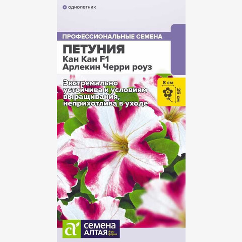 Неприхотливый в уходе, экстремально устойчивый к условиям выращивания гибрид крупноцветковой петунии: устойчив к засухе, дождю, ветру и пониженным температурам. Очень длительный период цветения. Хорошо ветвится даже без прищипывания, формируя компактный шарообразный кустик. Цветки с оборчатым краем, яркой розово-вишневой окраски с контрастными белыми акцентами. Хорошо смотрится в массовых посадках и цветочных композициях, подходит для вазонов и бордюрных посадок. Высота растения: 20-25 см Ширина растения: 20-25 см Диаметр цветка: 7-8 см Условия выращивания, место посадки: солнечные участки Требования к грунту: питательный легкий грунт, от слабокислого до нейтрального Способы выращивания: рассадный Время посева на рассаду: февраль-март Способ посева: семена высевают на уплотненное ложе замоченных торфяных таблеток или увлажненного грунта, не заделывая. Драже увлажняют теплой водой до размягчения. Емкость накрывают прозрачной крышкой или пленкой до появления первых всходов, периодически проветривают. Обеспечивают досветку посевов не менее 10-12 часов в сутки, температуру +18…22°С Время до появления всходов: 3-5 дней Перевалка: производится через 3-4 недели от всходов. Объем индивидуальных емкостей не менее 0,5 л. При прорастании корней через дренажные отверстия перевалка в больший объем грунта Время высадки в открытый грунт: май-июнь, около 7-9 недель от посева Посадочное расстояние: 30-35 см Период цветения: май-сентябрь, с 9-11 недели от посева, в условиях длинного светового дня может зацветать на 1-2 недели раньше Уход: первую подкормку проводят через 10-14 дней от появления всходов комплексным минеральным удобрением, далее – 1 раз в 7 дней. В начале бутонизации из подкормок убирают азот. Внимание! Семена дражированные, оболочку драже не разрушать, она растворяется при поливе!