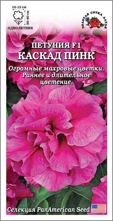 Шикарное быстрорастущее растение с аккуратными листочками, ниспадающие побеги которого сплошь покрыты огромными махровыми цветками розового цвета. Петуния серии Каскад отличается ранним и длительным цветением, устойчива к непогоде, долго сохраняет свою декоративность. Прекрасно подходит для создания ярких клумб и бордюров, великолепно смотрится в подвесных кашпо, вазонах и балконных ящиках.