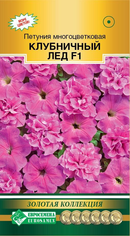 Петуния стала в настоящее время королевой среди популярных цветочных растений. Ее выращивают сами, покупают в готовом виде уже цветущей либо в виде рассады, с большой любовью высаживают ее в различные цветники открытого грунта, напольные горшки и контейнеры, подвесные вазоны, балконные ящики, а ведь еще совсем недавно прохожие с удивлением разглядывали редкие балконы городских домов, украшенные красивой шапкой цветов. Клубничный Лед- многоцветковая петуния с темно-розовыми цветками, образующая 50 % махровых цветков, по форме напоминающих гвоздику, и 50 % простых, которые очаровывают желтым зевом. Цветки имеют диаметр 5,5–6,0 см. Растения хорошо разветвленные, обильно цветущие, подходят как для выращивания в контейнерах, вазонах, крупных горшках, так и в качестве клумбовых посадок.