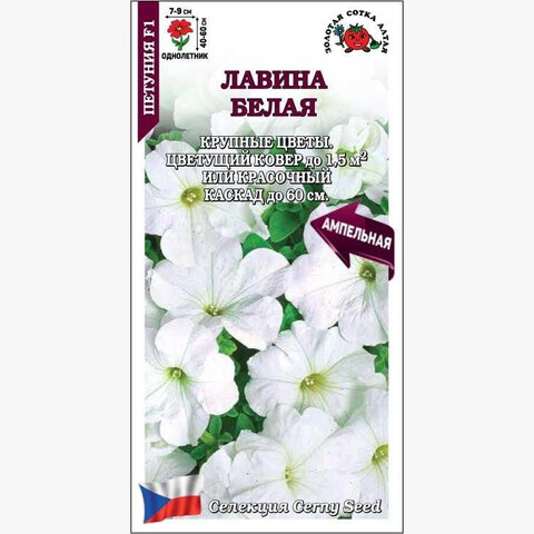 Необыкновенно красивое растение с повисающими побегами длиной до 60 см. Молодые кустики прямостоячие. Вырастая, побеги свешиваются и образуют настоящую лавину из крупных белоснежных цветков. Благодаря отличному ветвлению боковых побегов одно растение способно создать на клумбе цветущий ковер площадью до 1,5 кв.м. Великолепно смотрится в подвесных кашпо, вазонах и балконных ящиках.