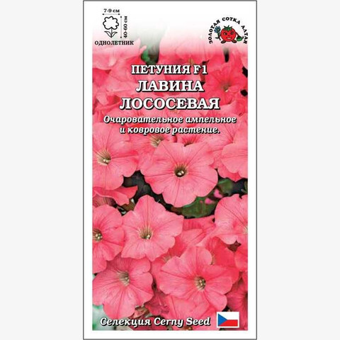 Очаровательная петуния со свисающими побегами длиной до 60 см. Крупные цветки красивого лососевого цвета в период цветения полностью покрывают растение, образуя красочный каскад. Благодаря отличному ветвлению одно растение способно создать на клумбе цветущий ковер площадью до 1,5 кв.м. Великолепно смотрится в вазонах и подвесных кашпо, используется как ампельное горшечное растение для украшения помещений.