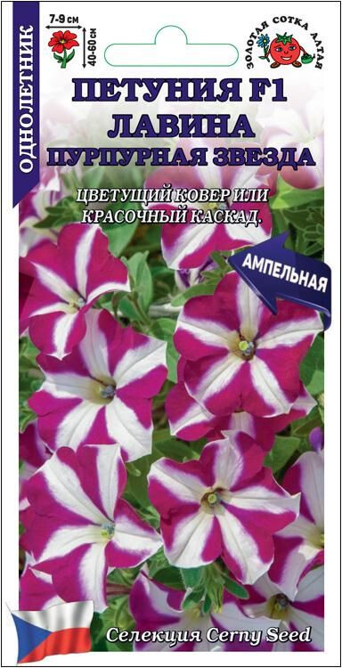 Очень красивое растение со стелющимися боковыми побегами длиной до 60 см, способное создать на клумбах цветущий ковер площадью до 1,5 кв.м. Цветы воронковидные, пурпурные с белой звездой, во время цветения полностью покрывают растение, образуя красочный каскад. Великолепно смотрится в подвесных кашпо, вазонах и ящиках, используется как ампельное горшечное растение для украшения помещений.