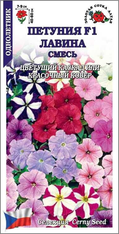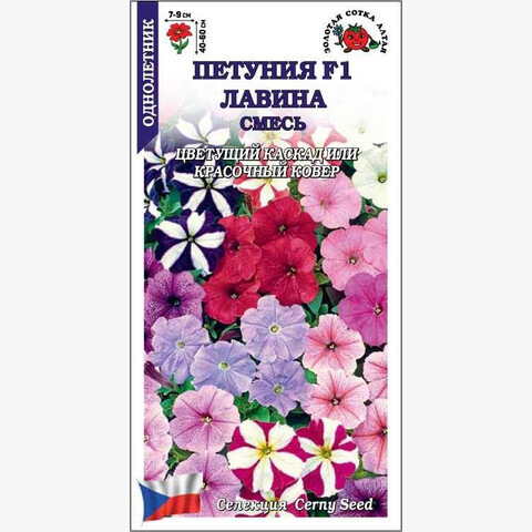 Смесь необыкновенно красивых петуний со стелющимися побегами длиной до 60см. Молодые кустики прямостоячие, вырастая, побеги свешиваются и образуют настоящую цветущую лавину. Цветы многочисленные, крупные, однотонной окраски или со звездой в центре. Благодаря отличному ветвлению одно растение способно создать на клумбах ковер площадью до 1,5 кв.м. Великолепно смотрится в подвесных кашпо, вазонах и ящиках.