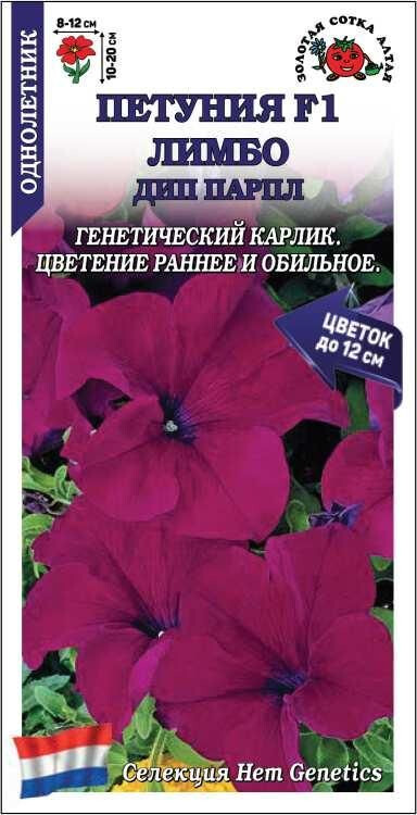 Серия генетически карликовых петуний, идеально подходящих для выращивания в различных контейнерах и создания ковровых цветников. Растения ветвистые, не вытягиваются, но отлично разрастаются вширь; высота в горшках 10-15 см, в цветниках – до 20 см. Цветы крупные, воронковидные, темного пурпурного цвета. Петунии Лимбо отличаются ранним и долгим цветением, устойчивы к непогоде.