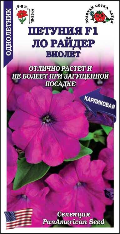Уникальный карликовый гибрид с высокой степенью устойчивости к болезням, благодаря чему прекрасно подходит для загущенных посадок. Растение очень холодостойкое, быстро восстанавливается после непогоды, цветет пышно до глубоких заморозков. Крепкие побеги не вытягиваются и образуют плотный компактный кустик диаметром 20-30 см. Крупные воронковидные цветы окрашены в привлекательный лилово-фиолетовый цвет. Петунии серии Lo Rider наилучшим образом подходят для горшков, кашпо, балконных ящиков, клумб и бордюров. Могут использоваться как горшечные растения для украшения помещений.