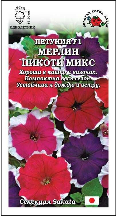 Гибриды серии Мерлин очень однородны, не полегают и сохраняют компактность на протяжении всего сезона, невероятно обильно цветут до заморозков, высокоустойчивы к непогоде и быстро восстанавливают цветение после дождя и ветра. Цветы многочисленные, сочных оттенков, красиво контрастирующих с белым кантом. Идеальная серия для контейнерного выращивания, прекрасно подходит для украшения цветников.