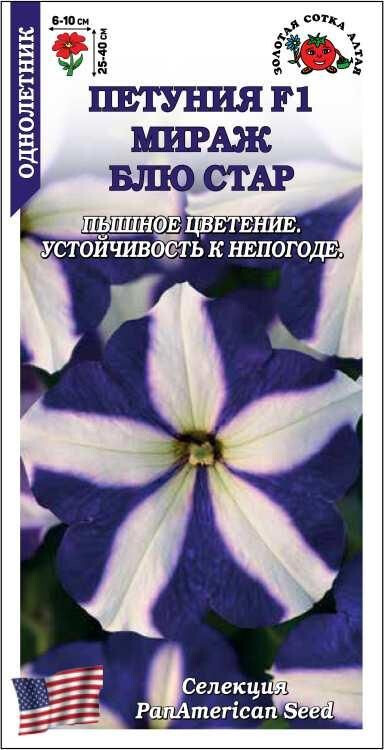 Петунии серии Mirage зарекомендовали себя устойчивостью ко всем капризам природы: они не боятся ни дождя, ни ветра, ни жары, стойко выдерживают похолодания. Компактные, с хорошей ветвистостью растения поражают пышностью цветения. Ароматные цветки синего цвета с белой звездой придают особое очарование клумбам, бордюрам, подвесным кашпо, вазонам и балконным ящикам.