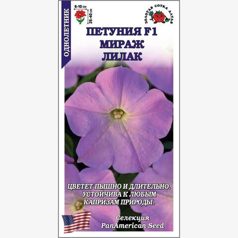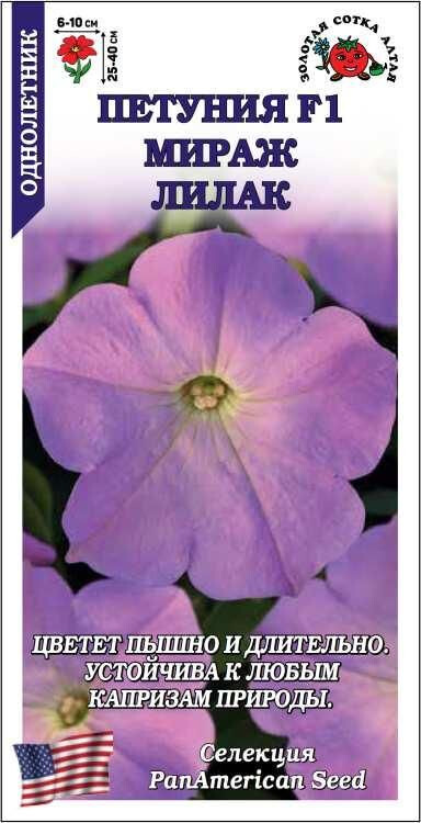 Петунии серии Mirage устойчивы к любым капризам природы: они не боятся ни дождя, ни ветра, ни жары, стойко выдерживают похолодания. Растения компактные, сильноветвистые, поражают пышностью и длительностью цветения. Цветки нежного лилового оттенка, крупные и ароматные. Прекрасный материал для создания ярких клумб и бордюров, великолепно смотрится в подвесных кашпо, вазонах и ящиках.