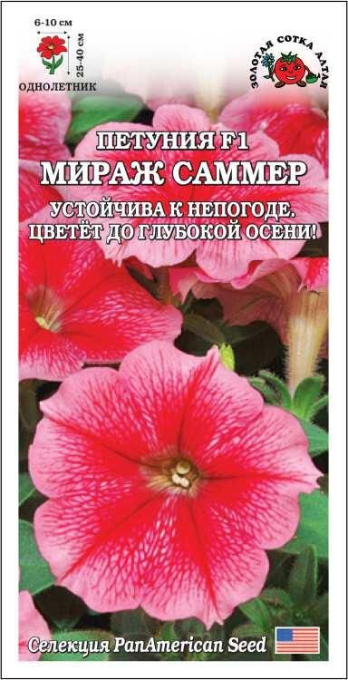 Петунии серии Mirage устойчивы ко всем капризам природы: они не боятся ни дождя, ни ветра, ни жары, стойко выдерживают похолодания. Компактные, с хорошей ветвистостью растения поражают пышностью цветения. Ароматные цветки красного цвета с темно-алыми прожилками придают особое очарование клумбам, бордюрам, подвесным кашпо, вазонам и балконным ящикам.