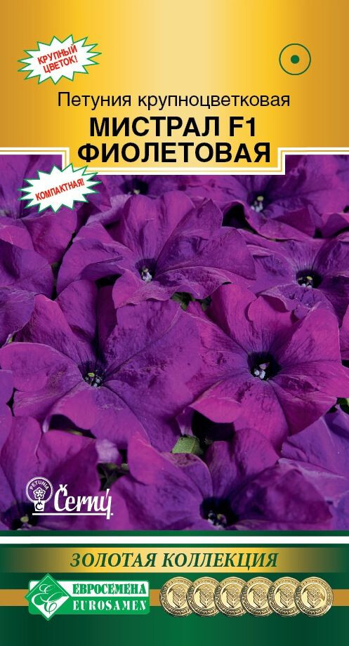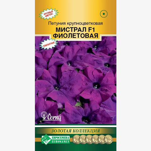 Петуния – признанный фаворит среди однолетников в оформлении участков цветущими растениями. Она широко используется как на клумбах, так и в контейнерах. По красоте, неприхотливости, обильности и длительности цветения ей нет равных. Конечно, можно просто посадить петунию на клумбу, в цветочный горшок или подвесное кашпо – красиво она будет выглядеть везде. Но гораздо лучше продумывать оформление клумб петуниями, подбирать ей подходящих компаньонов и проявлять немного фантазии. Тогда от красивейших цветников просто нельзя будет оторвать глаз. Мистрал - достойная серия компактных, современных и продуктивных петуний. Растения отличаются неприхотливостью и выносливостью, компактным габитусом, устойчивостью к неблагоприятным погодным условиям и обильным цветением. Цветки крупные, с волнистым краем темно-сиреневой окраски, окончательно распустившиеся цветки вокруг зева светлеют, что повышает их привлекательность. Прекрасно себя чувствует как в цветниках открытого грунта, так и в кашпо, вазонах и горшках, широко используется как средство декора.