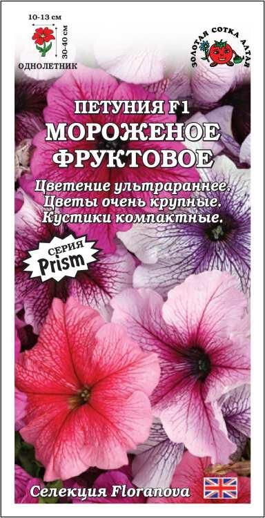 Петунии серии Prism зацветают очень рано и цветут обильно в течение всего сезона. Кустики естественной компактной формы, ветвистые, однородные по размеру и времени цветения. Цветы очень крупные и многочисленные, с расходящимся от центра контрастным жилкованием. Петунии отлично растут в контейнерах, используются в цветниках.