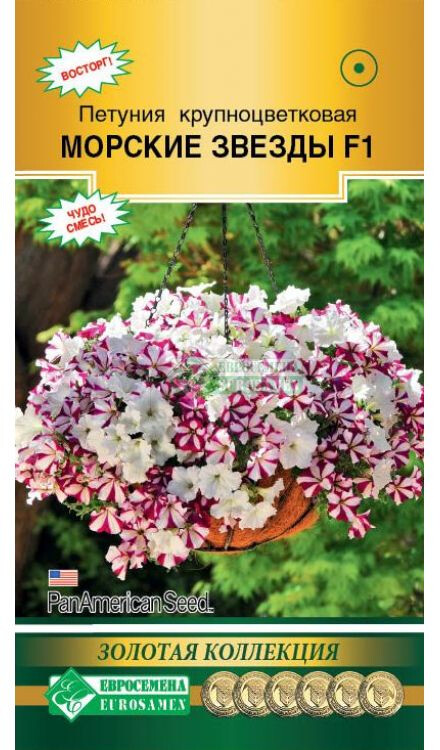 Петуния – роскошная культура, которую дизайнеры часто используют при оформлении ландшафта. Для создания гармоничных композиций применяют сочетания разных оттенков и форм, чтобы растения в течение лета радовали владельцев обильным цветением. Она способна кардинально преобразить наскучившее оформление. Петуния Морские Звезды- блистательная смесь крупноцветковой петунии, которая не может не вызывать восхищения! Цветки поражают своей пышностью цветения. На протяжении всего лета она будет раскрывать многочисленные, очень крупные белоснежные и цвета бургунди, с белой звездой, цветки. Это быстрорастущий и ранний гибрид с неукротимой мощью цветения, густо покрывает компактный кустик и великолепно подходит для оформления комфортных и романтических уголков отдыха. Замечательно подходит в оформлении различных клумб, рабаток, балконов и лоджий городских квартир. Отличается высокой устойчивостью к жаре, дождю и ветру, регенерирующей способностью восстанавливаться после непогоды. Высота растения-25 см Диаметр цветка-10 см