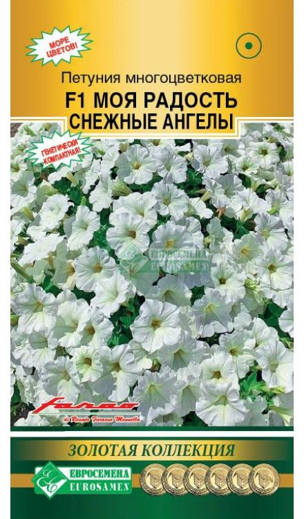 Сегодня петуния стала украшением клуб, рабаток, окон, балконов, вазонов, цветников, бордюров – где только ее не встретишь! Щедрое цветение, фантастическое сочетание окрасок цветков создают нарядную, праздничную атмосферу, а контрастные расцветки придают цветкам некую торжественность. С каждым годом появляется все больше и больше различных гибридов этого популярного растения, но появление этого гибрида произвело настоящий фурор. Моя Радость- новый тип многоцветковой петунии с компактным габитусом и необычайно богатым, обильным и продолжительным цветением. Цветки белоснежной окраски, с зеленоватой горловиной, плотные, устойчивые к осадкам и ветру. В течение всего сезона растения сохраняют аккуратную форму, не требуя прищипки. Компактность наследуется генетически. Кустики похожи на ровные, пышные, цветущие шарики. Благодаря гену мужской стерильности гибрид не завязывает семян и цветет постоянно – с ранней весны до поздней осени. Гибрид идеально подходит для садовых ваз и балконных ящиков. Не содержит ГМО! Высота растения-25-30 см Диаметр цветка-6-7 см