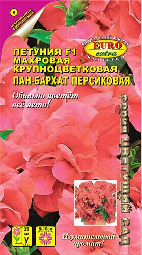 ПЕТУНИЯ F1 МАХРОВАЯ КРУПНОЦВЕТКОВАЯ ОБИЛЬНОЦВЕТУЩАЯ ПАН-БАРХАТ ПЕРСИКОВАЯ F1 Petunia Floribunda double