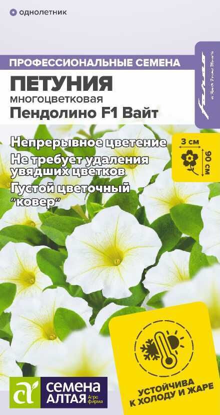 Раннецветущая петуния. Формирует густой цветочный ковер из множества миниатюрных белых цветков с лимонным оттенком в центре. Хорошо переносит холод и жару, быстро восстанавливается после непогоды. Не требует удаления увядших цветков. Цветение непрерывное и продолжительное. Подходит для выращивания в грунте на клумбах, в подвесных кашпо, вазонах, балконных ящиках. Можно формировать как почвопокровное или ампельное растение. Высота растения: 20 см Длина плети: 75-90 см Диаметр цветка: 2,5-3 см Условия выращивания, место посадки: солнечные участки Требования к грунту: питательный легкий грунт, от слабо-кислого до нейтрального Способы выращивания: рассадный Время посева на рассаду: январь-март Способ посева: семена высевают на уплотненное ложе замоченных торфяных таблеток или увлажненного грунта, не заделывая. Драже увлажняют теплой водой до размягчения. Емкость накрывают прозрачной крышкой или пленкой до появления первых всходов, периодически проветривают. Обеспечивают досветку посевов не менее 10-12 часов в сутки и температуру 22-24°С Время до появления всходов: 3-5 дней Перевалка: производится через 2-3 недели от всходов в фазе 2-4 настоящих листьев. Объем индивидуальных емкостей не менее 0,5 л. При прорастании корней через дренажные отверстия перевалка в больший объем грунта. Диаметр окончательных емкостей должен быть не менее 14-20 см, оптимальный объем 10-15 л. Время высадки в открытый грунт: май-июнь, не менее 5-6 недель от посева Посадочное расстояние: 30-40 см Период цветения: май-сентябрь, через 5-6 недель после посева Уход: рекомендуется провести прищипывание побегов для стимуляции ветвления на 4-5 неделе. Первую подкормку проводят через 10-14 дней от появления всходов комплексным минеральным удобрением, далее – 1 раз в 7 дней. В начале бутонизации из подкормок убирают азот. Не допускать пересыхания субстрата! Внимание! Семена дражированные, оболочку не разрушать, она растворяется при поливе!