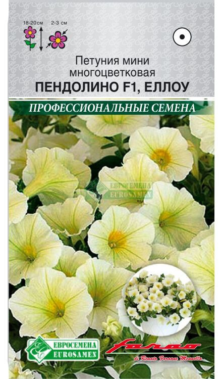 Pendolino- cамый раннецветущий и совершенно новый гибрид на рынке! Габитус растения и диаметр цветка напоминают калибрахоа: тонкие, длинные, ниспадающие побеги, усыпанные мелкими цветками, достигающие в длину около 1 метра, стремятся вверх и в стороны, благодаря чему середина куста никогда не бывает пустой, что часто случается с ампельными петуниями. Цветки небольшие, но многочисленные, непрерывно и чрезвычайно обильно цветут с весны до поздней осени благодаря гену мужской стерильности, быстро восстанавливается после дождей и переувлажнения. Характеризуется высокой устойчивостью, как к повышенным, так и пониженным температурам, широким спектром применения: кашпо, подвесные корзины, клумбы и рабатки. Идеальный семенной материал с высокими показателями всхожести и сортовой чистоты.