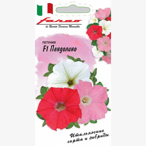 Невероятно яркие, самые раннецветущие и совершенно новые однолетние гибриды итальянской серии F1 Пендолино. Тонкие, длинные, ниспадающие побеги, достигающие в длину около метра и направленные вверх и в стороны, усыпаны миниатюрными (2-3 см в диаметре) эффектными цветками, практически закрывающими всю зелень. Данная особенность позволяет избегать образования пустот в середине куста, часто свойственных ампельным формам. Благодаря непрерывному и чрезвычайно обильному цветению с весны и до поздней осени, высокой устойчивости к повышенным и пониженным температурам, петунии можно использовать как для кашпо и подвесных корзин, так и для ландшафтного дизайна, а также для клумб и рабаток. Выращивают рассадным способом. Посев проводят с января по апрель поверхностно, под стекло (после появления всходов стекло убирают). В зимние месяцы (январь-февраль) подсветка обязательна. Светолюбива и достаточно засухоустойчива. Предпочитает легкие, плодородные, хорошо дренированные почвы.