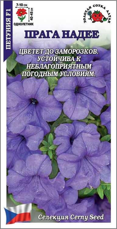 Петунии серии Прага устойчивы к неблагоприятным погодным условиям, отлично растут не только в теплые солнечные дни, но дают хороший результат и при холодной дождливой погоде, цветут до заморозков. Хорошо ветвящееся от основаниярастение усыпано крупными воронковидными цветами очень красивого голубого цвета. Используется для украшения клумб, рабаток, бордюров, наилучшим образом подходит для посадки в вазоны, кашпо, балконные и оконные ящики.