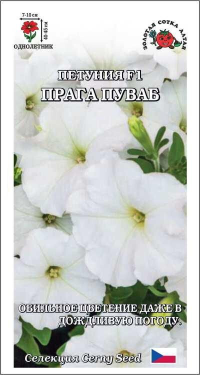 Гибриды серии Прага отлично растут не только в теплые солнечные дни, но и дают хороший результат при холодной дождливой погоде. Сильно ветвящееся от основания растение усыпано крупными воронковидными цветами белого цвета. Превосходное украшение клумб, рабаток, бордюров, отлично смотрится в вазонах, кашпо, балконных и оконных ящиках. Цветет обильно до глубоких заморозков.