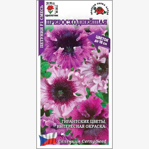 Эффектная смесь, представленная гибридами с поистине гигантскими бахромчатыми цветами различной (насыщенно-бордовой, темно-пурпурной, нежно-розовой и бледно-сиреневой, почти белой) окраски с темным центром. Растения мощные, компактные, ветвление слабое. Используется для оформления цветников, особенно хороша в ящиках, садовых вазах и горшках. Великолепно переносит пересадку в цветущем виде.