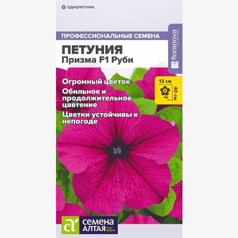 Раннецветущий экстремально крупноцветковый гибрид. Формирует хорошо ветвящийся компактный кустик, не требует формировки. Цветки насыщенно-пурпурного цвета с темными прожилками, очень долго сохраняют декоративность на растении, устойчивы к непогоде. Хорошо смотрится в массовых посадках и цветочных композициях, подходит для вазонов и балконных ящиков. Высота растения: 30-40 см Ширина растения: 30-40 см Диаметр цветка: 10-13 см Условия выращивания, место посадки: солнечные участки Требования к грунту: питательный легкий грунт, от слабокислого до нейтрального Способы выращивания: рассадный Время посева на рассаду: февраль-март Способ посева: семена высевают на уплотненное ложе замоченных торфяных таблеток или увлажненного грунта, не заделывая. Драже увлажняют теплой водой до размягчения. Емкость накрывают прозрачной крышкой или пленкой до появления первых всходов, периодически проветривают. Обеспечивают досветку посевов не менее 10-12 часов в сутки, температуру +22…24°С Время до появления всходов: 3-5 дней Перевалка: производится через 3-4 недели от всходов. Объем индивидуальных емкостей не менее 0,5 л. При прорастании корней через дренажные отверстия перевалка в больший объем грунта Время высадки в открытый грунт: май-июнь, не менее 6-7 недель от посева Посадочное расстояние: 30-40 см Период цветения: май-сентябрь, с 9-11 недели от посева, в условиях длинного светового дня может зацветать на 1-2 недели раньше Уход: первую подкормку проводят через 10-14 дней от появления всходов комплексным минеральным удобрением, далее – 1 раз в 7 дней. В начале бутонизации из подкормок убирают азот. Оптимальная температура для выращивания +16…18°С Внимание! Семена дражированные, оболочку драже не разрушать, она растворяется при поливе!