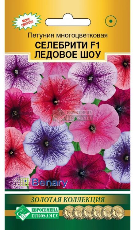 Петуния стала в настоящее время королевой среди популярных цветочных растений. Ее выращивают сами, покупают в готовом виде уже цветущей либо в виде рассады, с большой любовью высаживают ее в различные цветники открытого грунта, напольные горшки и контейнеры, подвесные вазоны, балконные ящики, а ведь еще совсем недавно прохожие с удивлением разглядывали редкие балконы городских домов, украшенные красивой шапкой цветов. Селебрити Ледовое Шоу, несомненно, займет лидирующее положение в цветнике, привлечет внимание своими многочисленными цветками самой разнообразной окраски, прожилки которых придают цветкам особенный шарм и легкость. Они поражают пышностью цветения и создают ощущение невероятной свежести и чистоты, долго сохраняют свою декоративность. Эту долгожительницу (цветет до заморозков) любят все и не равнодушны к ней! Она полновластная хозяйка террас и балконов, клумб и рабаток. Отличается устойчивостью к жаре, дождю и ветру.