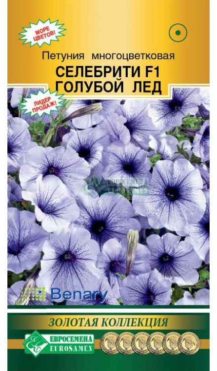 Петуния стала в настоящее время королевой среди популярных цветочных растений. Ее выращивают сами, покупают в готовом виде уже цветущей либо в виде рассады, с большой любовью высаживают ее в различные цветники открытого грунта, напольные горшки и контейнеры, подвесные вазоны, балконные ящики, а ведь еще совсем недавно прохожие с удивлением разглядывали редкие балконы городских домов, украшенные красивой шапкой цветов. Селебрити Голубой Лед, несомненно, занимает лидирующее положение в цветнике, привлекает внимание своими многочисленными и сияющими, словно голубые кристаллы, крупными цветками с тонкой узорчатой сеточкой. Цветы поражают пышностью своего цветения и создают ощущение невероятной свежести и чистоты, долго сохраняют свою декоративность. Эту долгожительницу (стоит в полном цвету до заморозков) любят все и не равнодушны к ней! Она полновластная хозяйка террас и балконов, клумб и рабаток. Отличается устойчивостью к жаре, дождю и ветру. Высота растения-25 см Диаметр цветка- 7-8 см