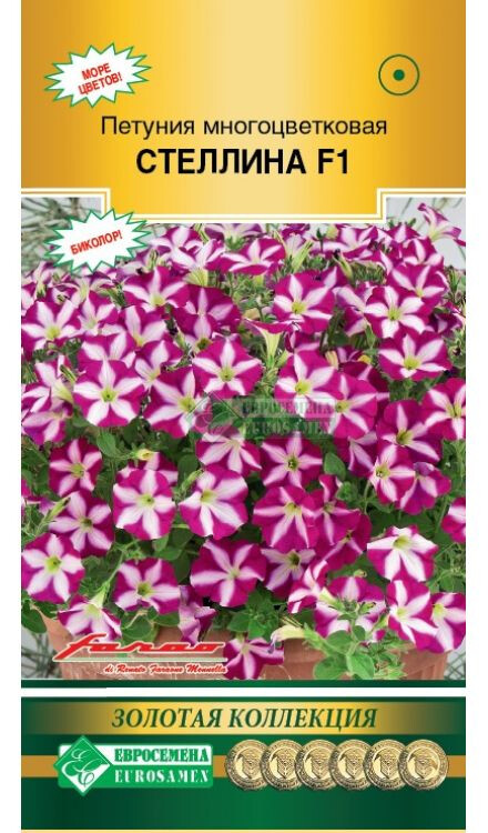 Петуния - настоящий фаворит в озеленении в настоящее время . Это украшение клуб, рабаток, окон, балконов, вазонов, цветников, бордюров – где только ее не встретишь! Щедрое цветение, фантастическое сочетание окрасок цветков создают нарядную, праздничную атмосферу, а контрастные расцветки придают цветкам некую торжественность. С каждым годом появляется все больше и больше различных гибридов этого популярного растения, но появление этого гибрида произвело настоящий фурор. Стеллина- петуния с каскадным габитусом и необычайно богатым, обильным и продолжительным цветением, не требующим прищипки. Кустики хорошо ветвятся и похожи на пышные, цветущие шары, а цветочки двухцветной окраски вызывают умиление и невероятную нежность. Благодаря гену мужской стерильности гибрид не завязывает семян и цветет постоянно – с ранней весны до поздней осени. Гибрид идеально подходит для садовых ваз и балконных ящиков.