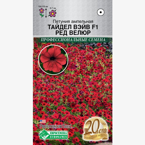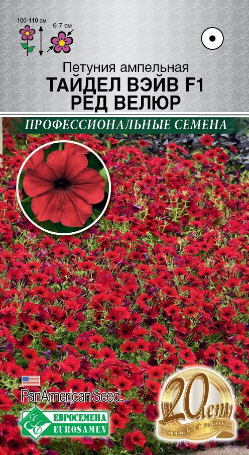 Серия Приливная Волна от PаnAmerican Seed -одна из самых популярных и гигантских петуний семейства Вэйв, Тайделы по праву считаются лучшим гибридом в группе каскадных петуний. Это уникальное, почвопокровное растение с длинными стеблями – 100-110 см. Цветки диаметром до 7 см имеют самый разнообразный окрас – белоснежный, светло-сиреневый, фиолетовый и красный, в зависимости от сорта, а Ред Велюр – одна из самых ярких окрасок этой фантастической серии. Тайделы относятся к тем немногим стелющимся видам, которые способны разрастаться за один сезон до 3-х метров в диаметре, а в высоту до 50-55 см, и, кстати сказать, они наименее ломкие среди огромного класса этой культуры. Серия отличается неприхотливостью в уходе, обильным цветением в течение всей вегетации. Высокая декоративность- отличительная особенность данной серии петунии, она не повреждается дождем и всегда опрятно и нарядно выглядит.