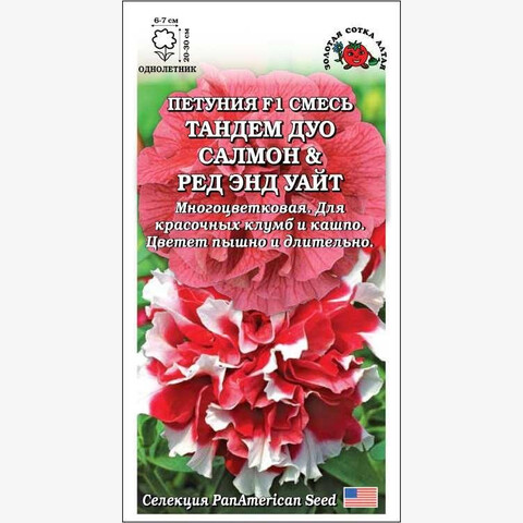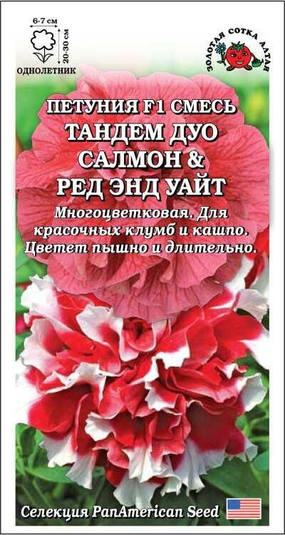 Петунии серии ДУО устойчивы к неблагоприятным условиям, отличаются пышным и длительным цветением. Кустики низкорослые, компактные, ветвящиеся, с небольшими аккуратными листочками. Цветы нежной лососево-розовой окраски и двухцветной красно-белой, многочисленные, махровые, с сильногофрированными лепестками. Петунии используются для создания цветников, великолепно смотрятся в кашпо, вазонах и ящиках.