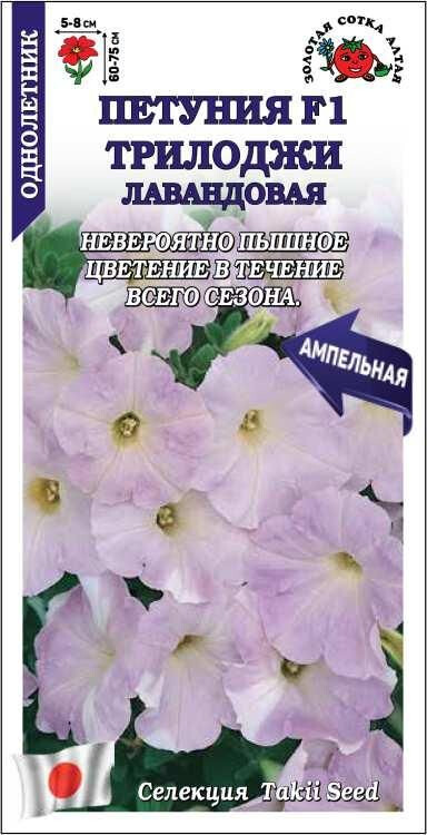 Петунии серии Trilogy не нуждаются в применении регуляторов роста, не требовательны к длине светового дня и пышно цветут до заморозков. Плотные и аккуратные растения при высоте до 25 см образуют длинные плети, на которых в огромном количестве распускаются нежные розовато-лавандовые цветы. Петунии этой серии великолепны в подвесных кашпо и вазонах на ножке, прекрасно подходят для создания ковровых цветников.