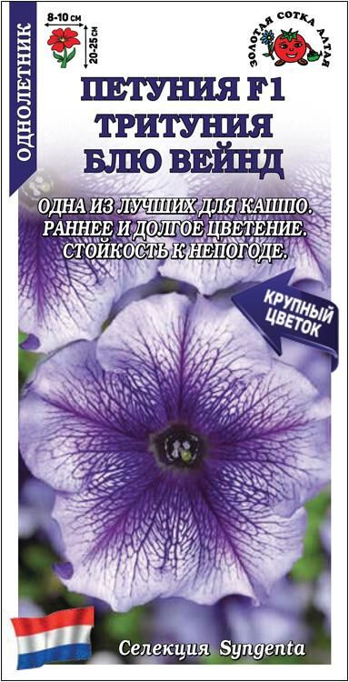 Крупноцветковая серия, объединившая лучшие характеристики петуний: раннее и долгое цветение, компактность, максимальная однородность по габитусу и выравненность по срокам цветения. Кустики густые, ветвистые, диаметром 25-30 см. Цветы голубовато-сиреневые с густолиловым жилкование, стойкие к дождю и ветру, не выгорают на солнце. Петунии этой серии используются в цветниках, особенно хороши в контейнерах..