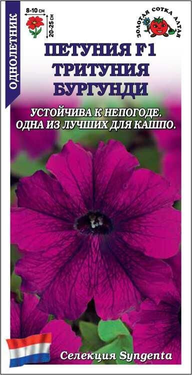 Очаровательная петуния для контейнерного выращивания. Кустики компактные, густые, ветвистые, диаметром 25-30 см. Цветы красивого винного цвета с более темным центром, крупные, на солнце не выгорают, устойчивы к дождю и ветру. Петунии данной серии великолепны в любых цветниках, зацветают рано и пышно цветут все лето, характеризуются выравненностью гибридов по срокам цветения.