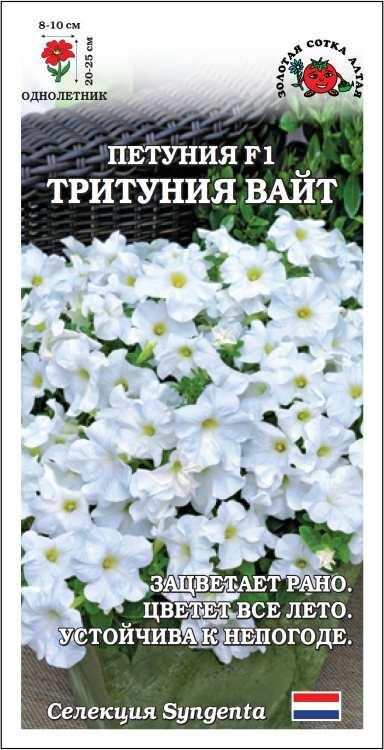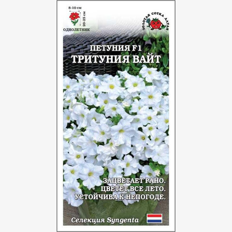 Очаровательная петуния для выращивания в кашпо, ящиках и вазонах. Кустики густые, ветвистые, диаметром 25-30 см. Цветы крупные, белоснежные, устойчивы к выгоранию на солнце, дождю и ветру. Петунии данной серии великолепны в любых цветниках, зацветают рано и обильно цветут все лето, характеризуются компактностью, максимальной однородностью по габитусу и выравненностью гибридов по срокам цветения.