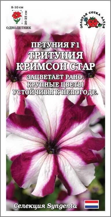 Великолепная крупноцветковая серия, объединившая лучшие характеристики петуний: раннее и длительное цветение, компактность, максимальная однородность по габитусу, выравненность по срокам цветения. Кустики густые, ветвистые, диаметром 25-30 см. Цветы малиновые с белой звездой в центре, стойкие к зною, дождю и ветру. Петунии данной серии великолепны в цветниках, особенно хороши в контейнерах.